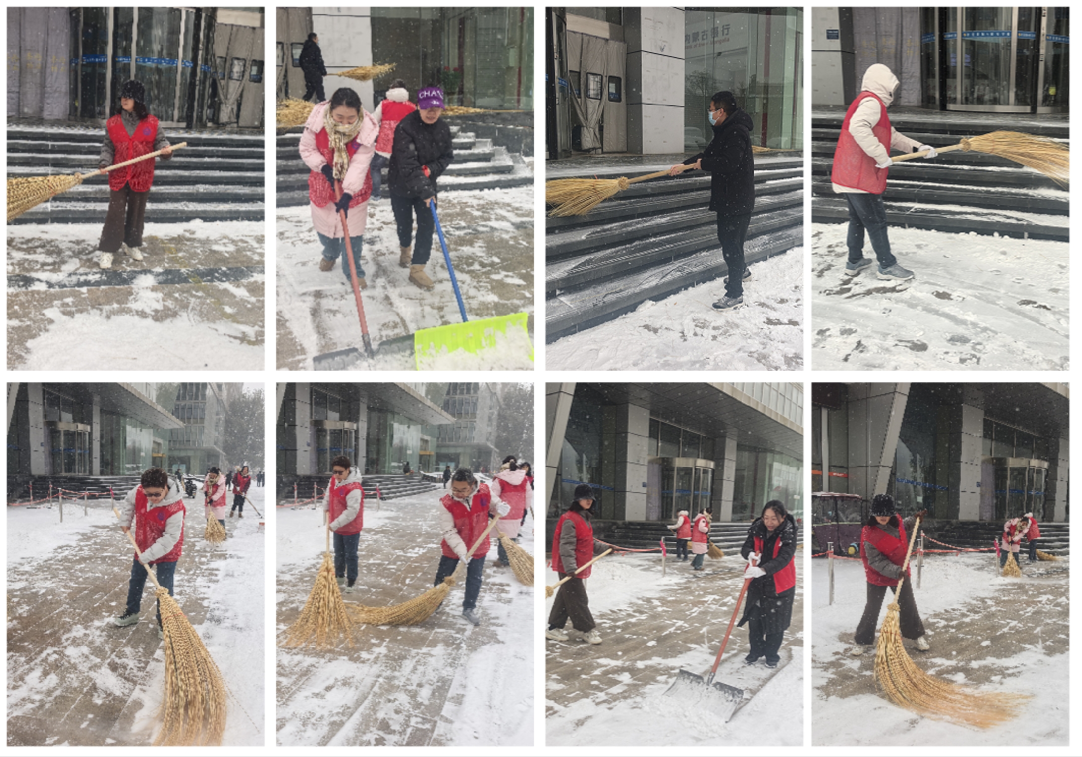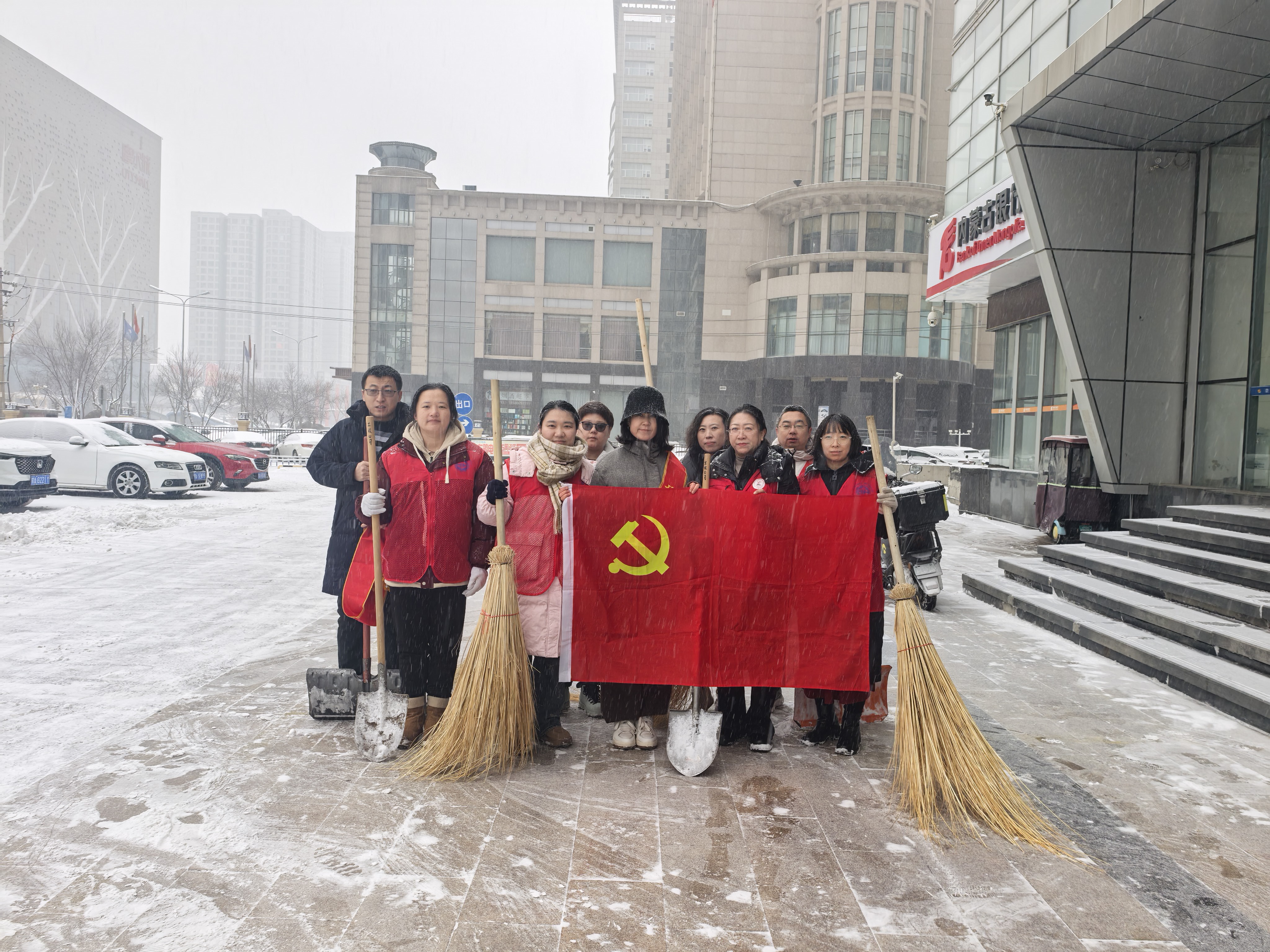宣讲会刚结束,党员志愿者们就顶着凛冽寒风和漫天飞雪,投身到清理办公楼周边积雪的工作中,他们以实际行动诠释全会精神,践行“我为群众办实事”的承诺。在办公楼前,分工明确,有的挥舞铁锹铲除积雪,有的手持扫帚清扫路面,尽管大雪不断落下,他们的额头却沁出了细密的汗珠。经过一个多小时的奋战,办公楼前的停车区域、人行通道被清扫得干干净净,上下楼梯也恢复了安全畅通。