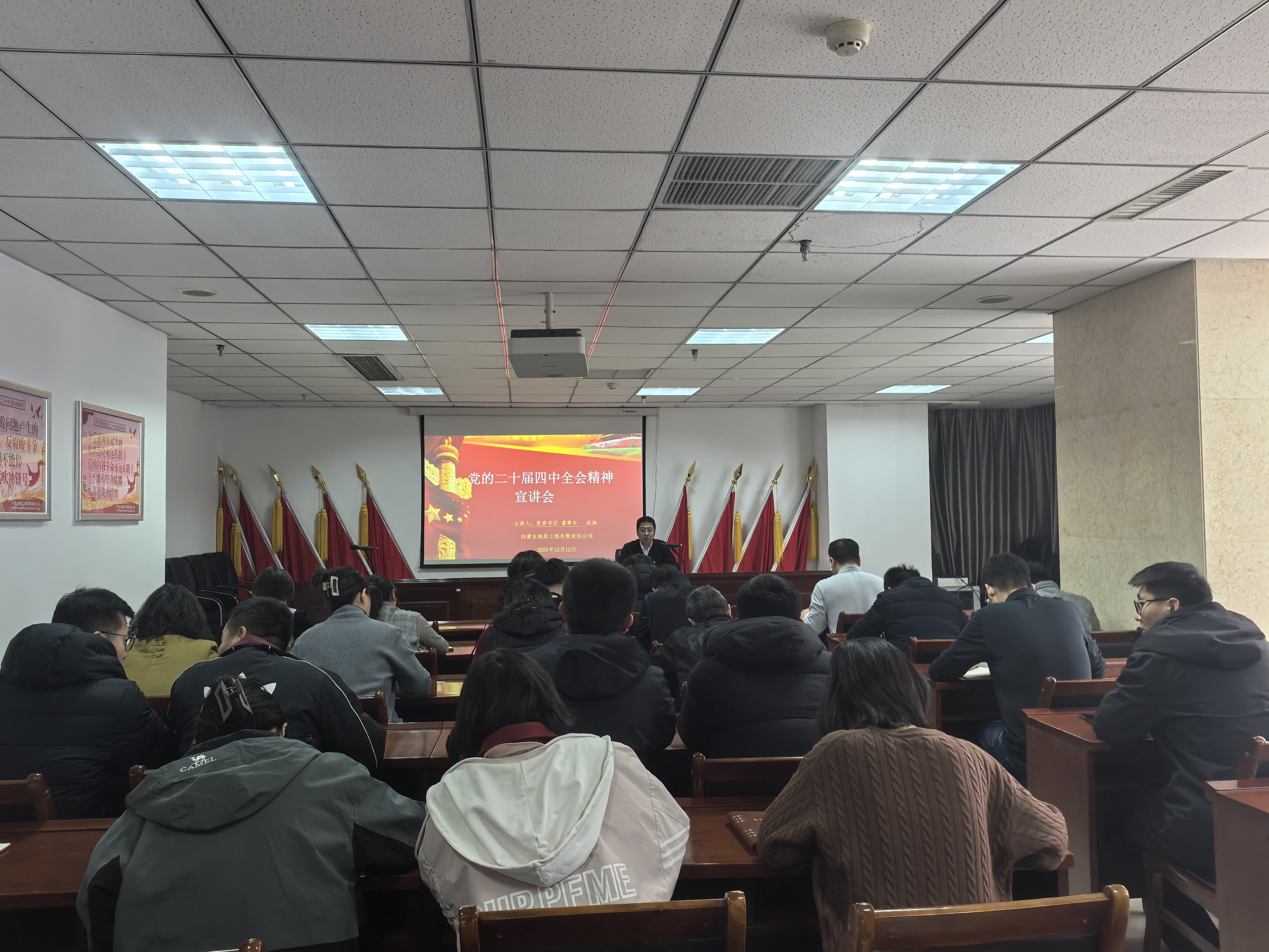 为深入学习贯彻党的二十届四中全会精神,推动全会决策部署在公司落地生根,2025年12月12日上午,pp电子极速糖果(游戏)有限公司 召开专题学习宣讲会。公司党委书记、董事长武旭同志主持会议并作专题宣讲,面向全体干部职工系统阐释全会精神的核心要义与实践要求。