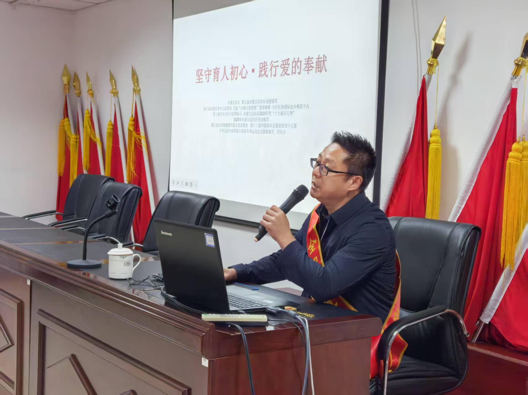 宣讲现场,扎根基层多年的付兵兵老师走上讲台,用朴实的语言讲述了自己坚守初心、攻坚克难的奋斗历程。为了帮助贫困学生圆大学梦,他四处奔走,发动社会力量,最终成立“梦想公益助学”平台,累计帮助1400余名家庭困难学生走进大学校园。在推进“石榴籽梦想小课堂”项目时,他连续三个月驱车往返百公里,只为给偏远乡村的孩子送去艺术类特色课程。面对工作中的重重困难,他以无私奉献的精神和担当作为的行动,在平凡岗位上书写了不平凡的故事。那些真实鲜活的细节、感人至深的情节,如鼓点般叩击着在场每一个人的心灵,让榜样的力量直抵人心。